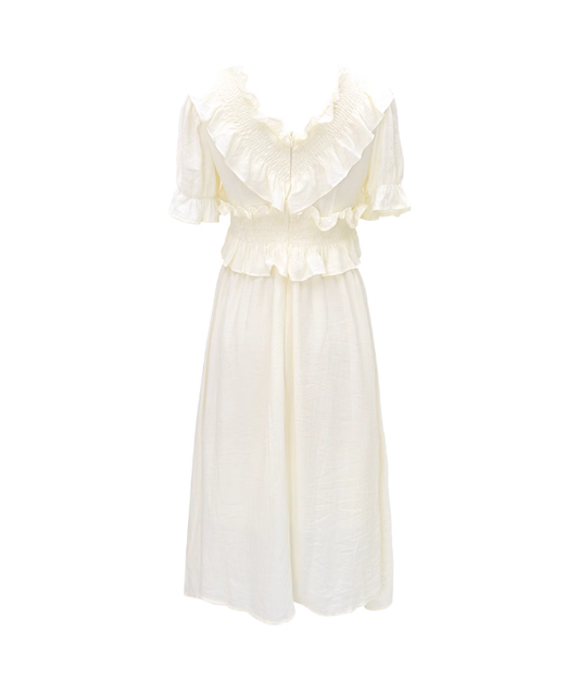 French bubble short sleeves one-shoulder dress retro sweet first love gentle long dress R0145