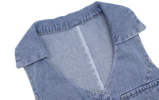 Denim skirt design halter neck skirt niche short small pleated skirt dress female summer hot girl R0098