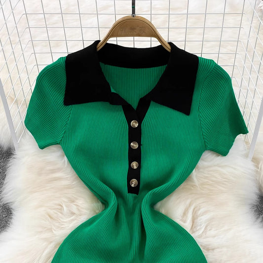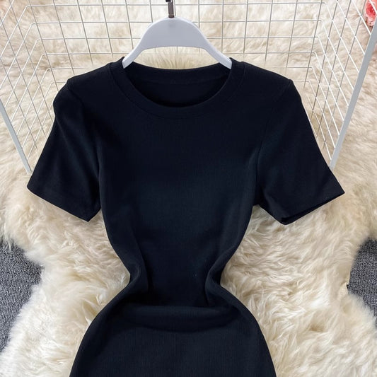 hot girl fashion short-sleeved mid-length knitted dress for women S4256