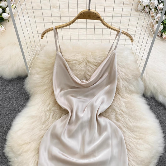 Fashionable Satin Suspender Skirt A-Line Dress for Women S4230