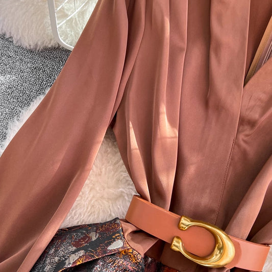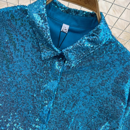 shiny sequined long-sleeved mid-length shirt dress fashionable a-line dress for women S4207