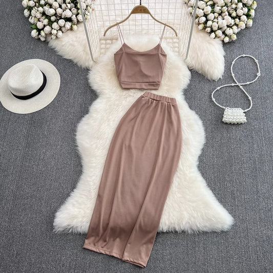Hot girl fashion suit women's backless two-piece mid-length skirt S4224