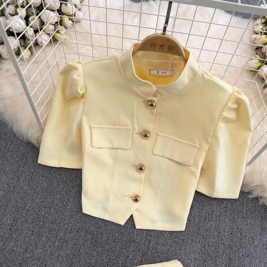 Fashion suit for ladies puff-sleeved short top two-piece set S4226