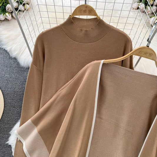 large shawl women's knitted cardigan coat two-piece a-line dress S4216