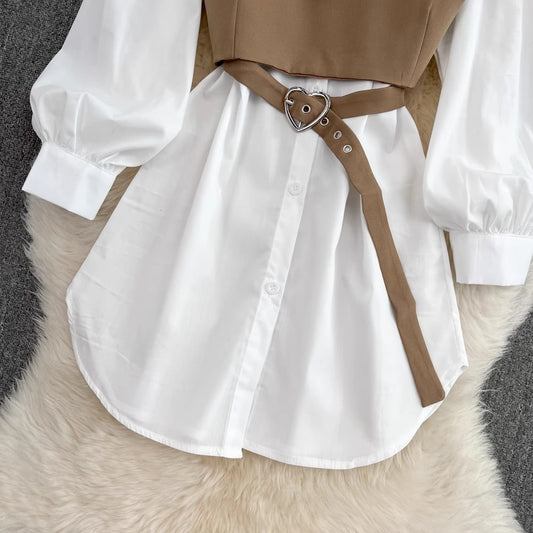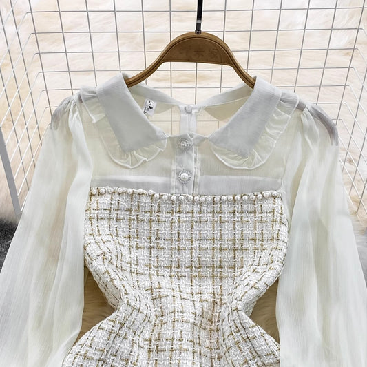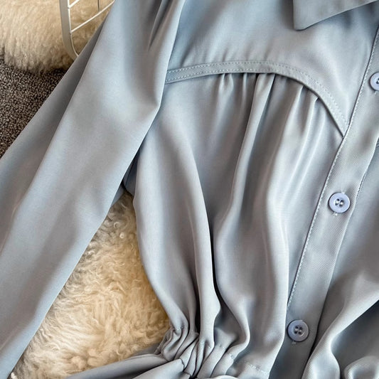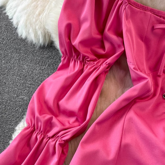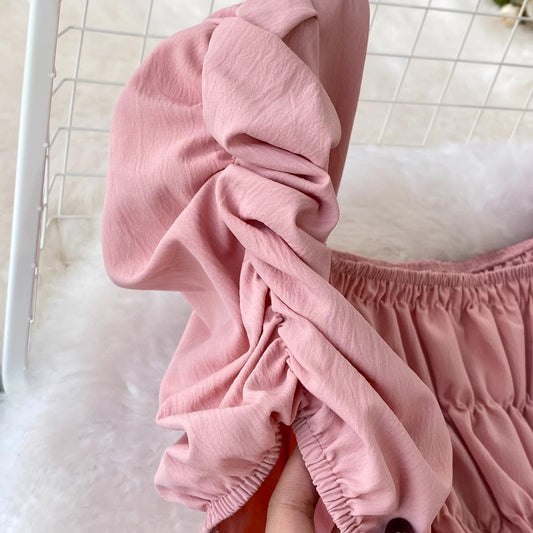 Puff Sleeve Square Neck Mid-Length Dress Fashionable Skirt S4012