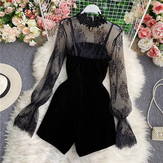 lace embroidered top, velvet tube top ,two-piece set for women S4026