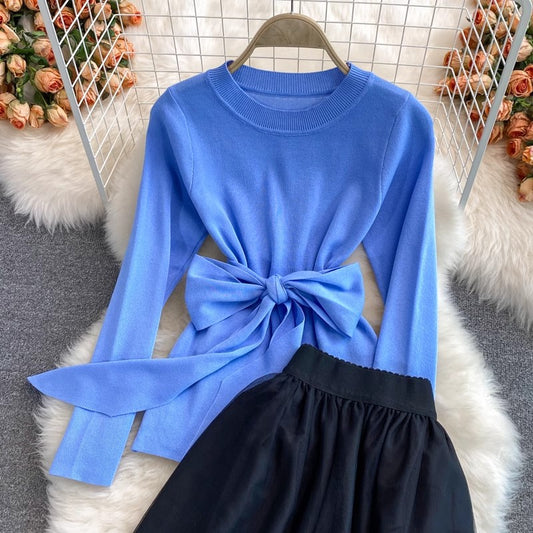 mid-length knee-length mesh embroidered skirt, two-piece suit sweater S4017