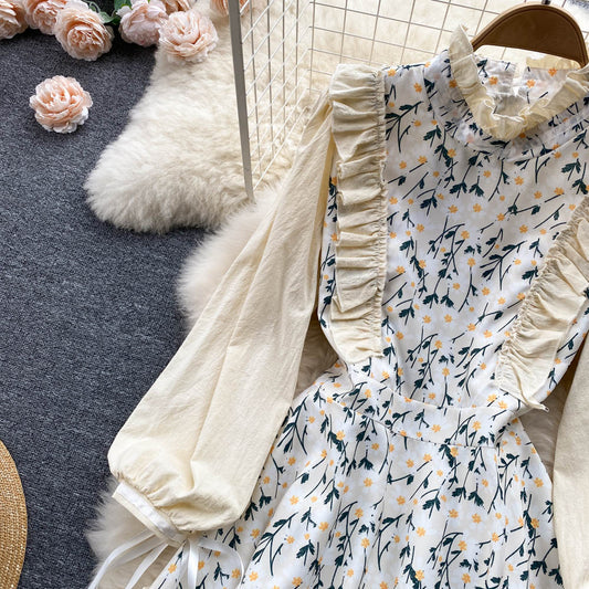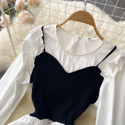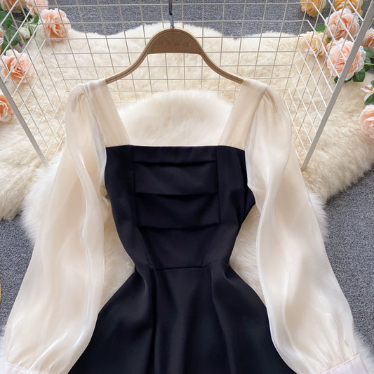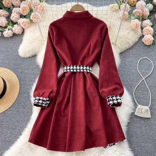 Stylish Houndstooth Contrast Long Sleeve Dress S224