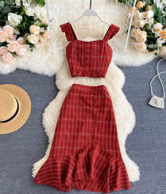 Stylish slim two-piece lattice set summer dress S87