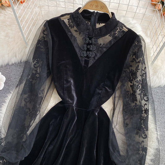 Black lace long sleeve dress black fashion dress S84