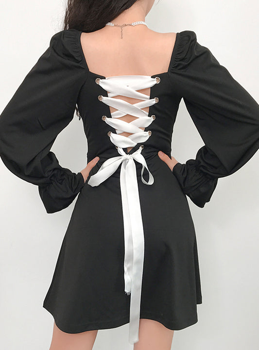 A line long sleeve little dress black dress S78