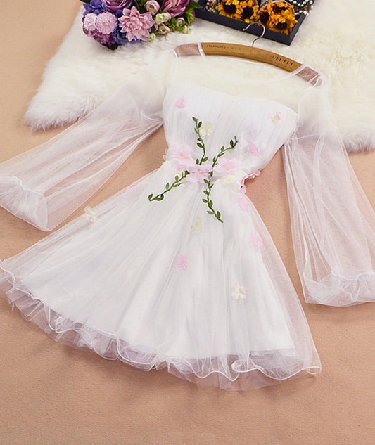 Mesh long sleeve tulle applique short dress party dress S85