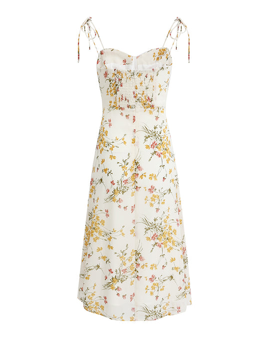 French holiday short yellow 2025 new suspender print dress R2652