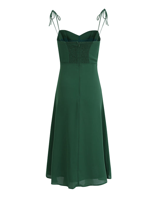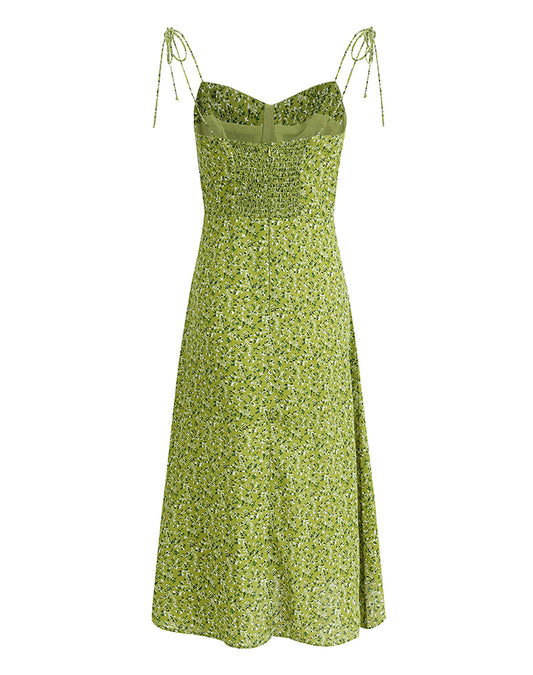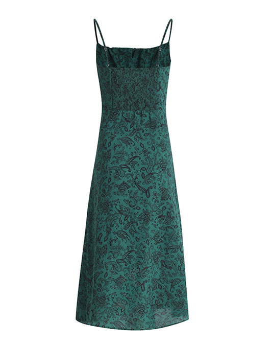 French holiday long green 2025 new dress with suspenders and prints R2606