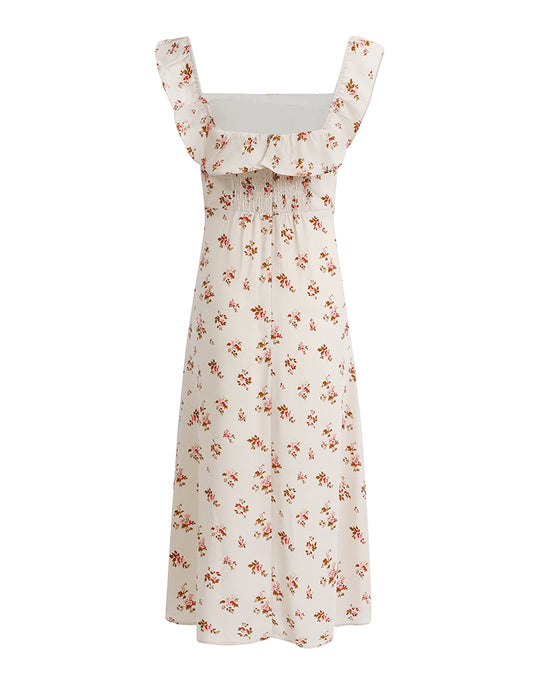 French holiday style small flying sleeves 2025 new dress with floral print R2603