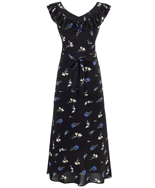 French retro floral suspender dress 2025 new holiday navy blue long dress R2591