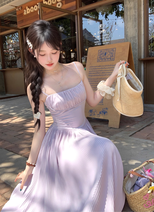 Purple one-shoulder waist suspender dress summer French style slim fit temperament skirt R4863