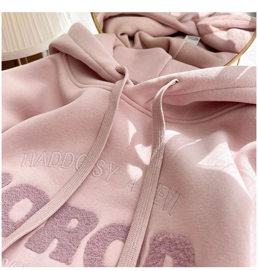 Sweet pink hooded sweatshirt for women embroidered top S4933