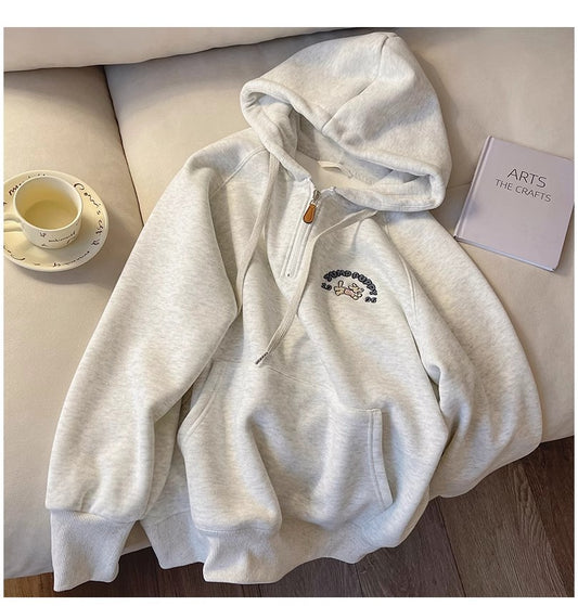 Half-zip hooded sweatshirt for women new casual pullover top jacket S4935