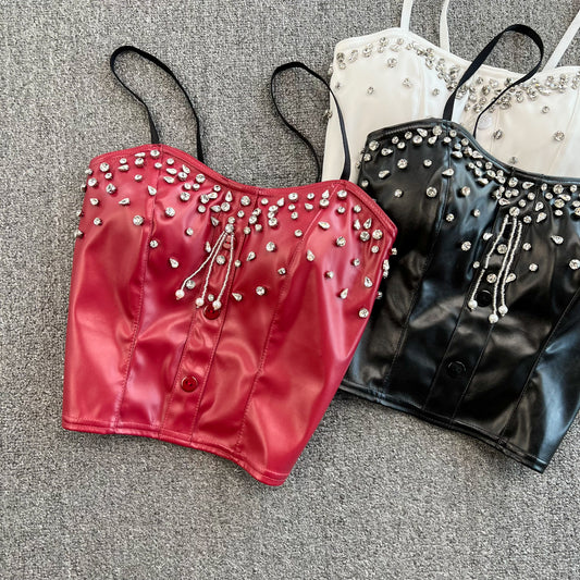 Fashionable PU leather tops handmade three-dimensional flower vest S248