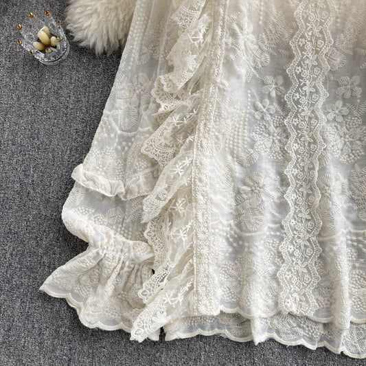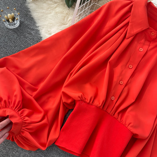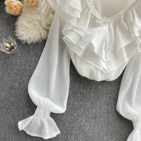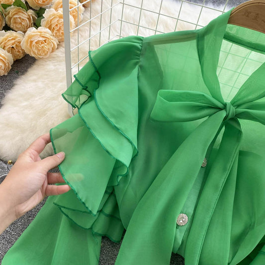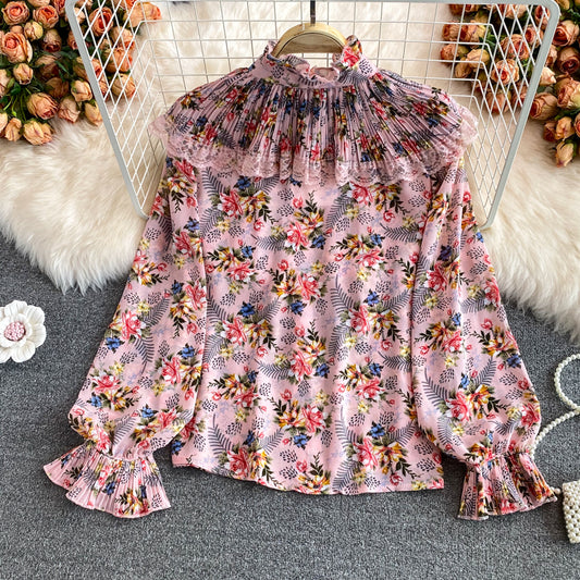 Sweet Ruffle Stand Collar Floral Chiffon Pleated Shirt Top S208