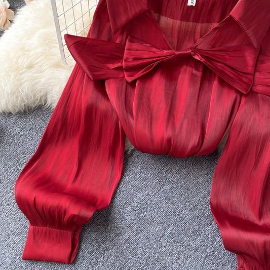 Retro jacquard ladies temperament beaded polo collar shirt S210