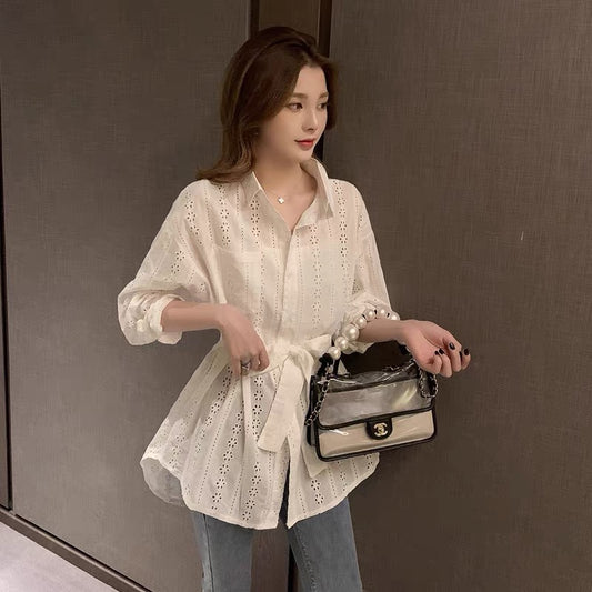 Stylish Cutout Tie Waist Long Sleeve Top S167