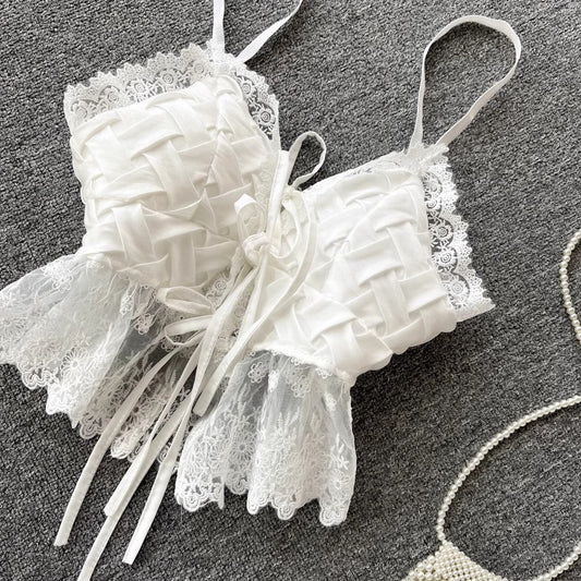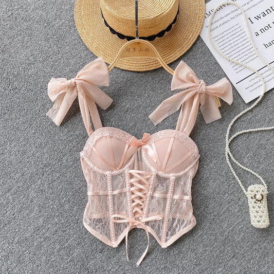 Hot Girl Style Tube Top Women's Lace Mesh Strap Bow Design Top S4620