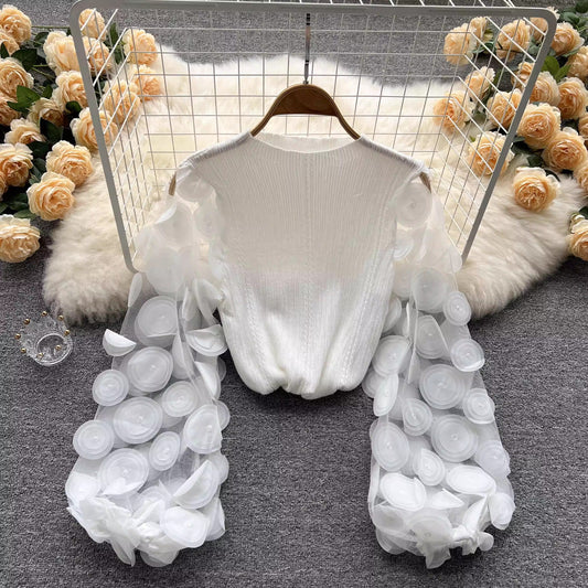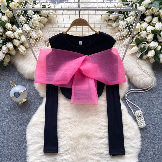 long-sleeved T-shirt for women mesh short design top trendy S4535