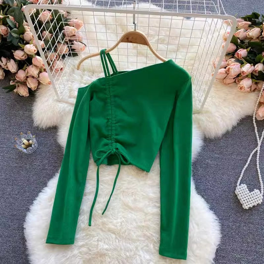 ins tops for women off-shoulder long-sleeved shirts S4551