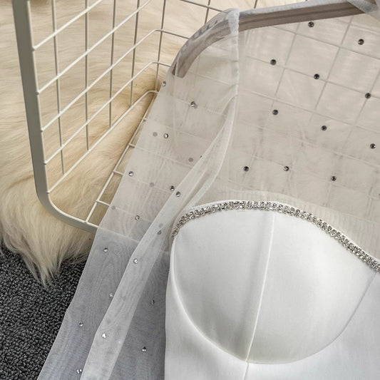 mesh beaded shirt for women fashionable and chic short top S4249