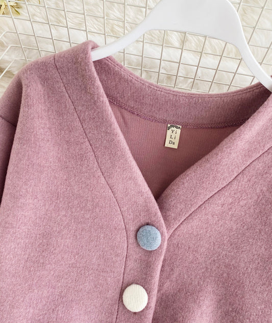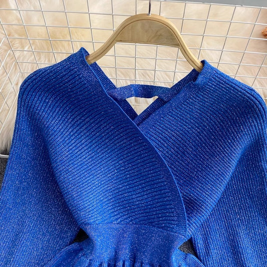 new ruffled short sweater women's V-neck pullover sweater top S4246
