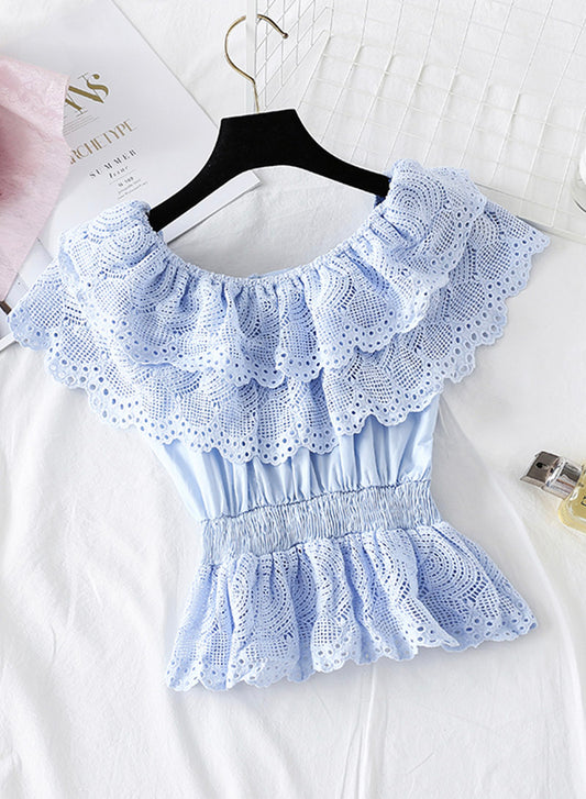 Romantic Short-sleeved Lace Top Women's Tops S4388
