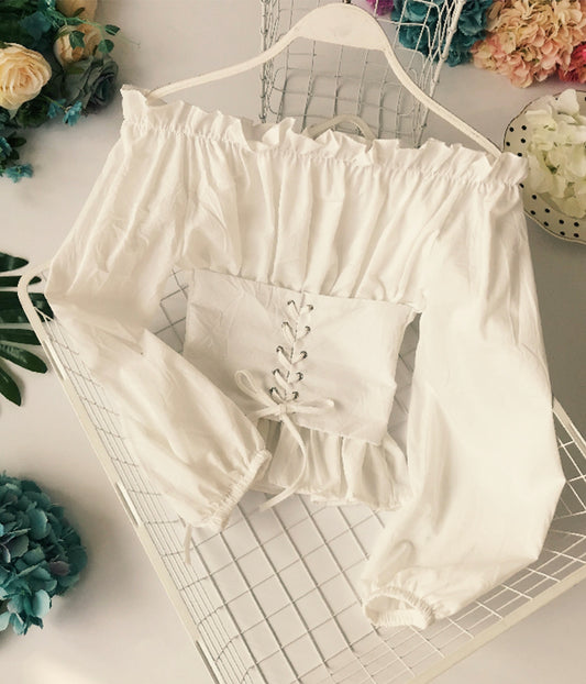 Stylish Off The Shoulder Long Sleeves Slim Top Blouse S4387