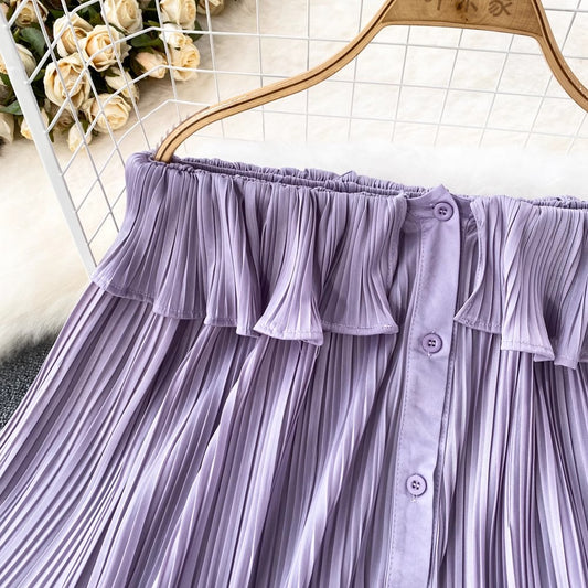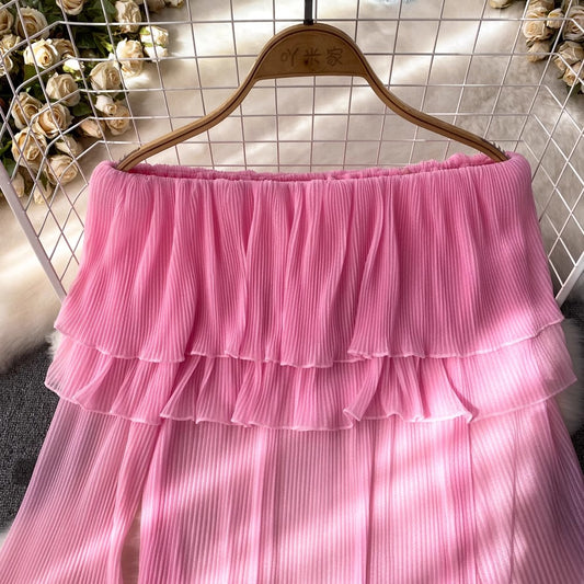 Fashionable design puff long-sleeved off-shoulder ruffle pleated chiffon women's casual top S4210