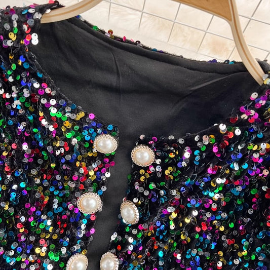 shiny sequins colorful long-sleeved cardigan suit short jacket women's clothing S4205