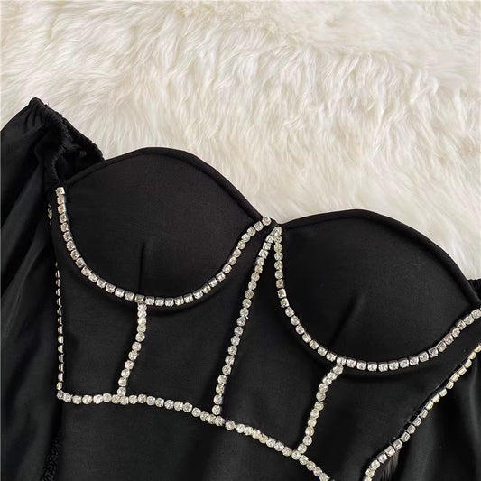 sexy rhinestone tube top shirt fashionable square neck top long sleeves S4170