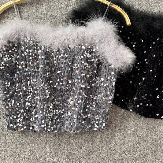sequins tube top for women's outer wear short top S4192