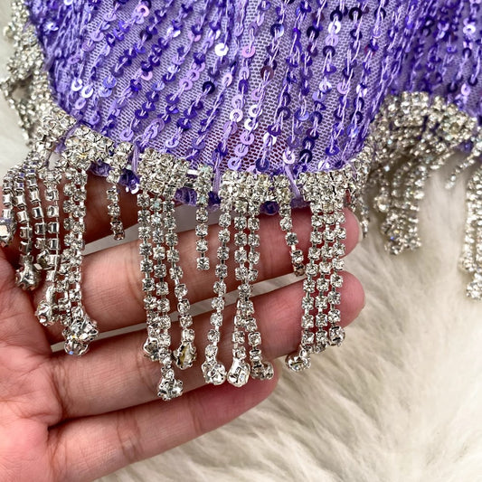 Fashionable sexy long-sleeved round neck sequins tassel T-shirt women's fashionable short top S4217