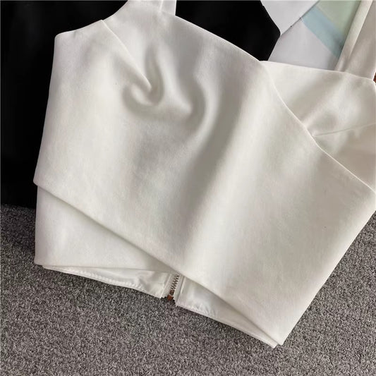 Summer white wide shoulder strap short cross tube top crop top sleeveless S4203