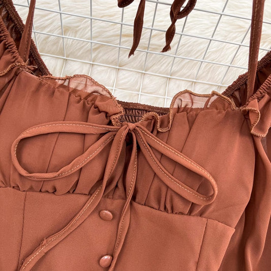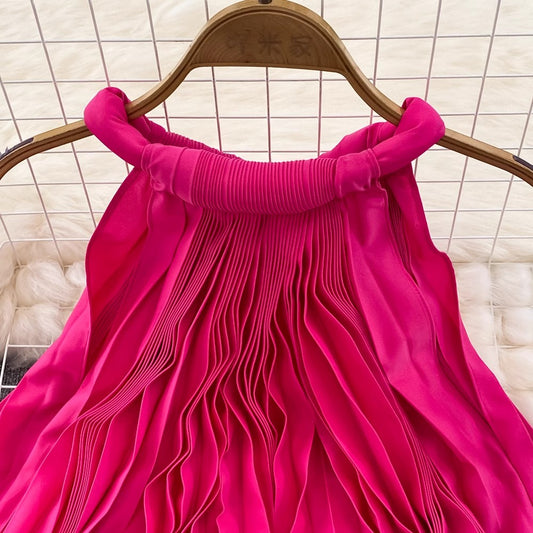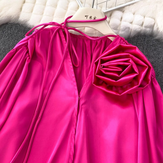 Round Neck Halter Neck Off-Shoulder Lantern Sleeve Pleated Shirt Women's Casual Top S4125