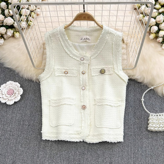 round neck vest jacket for women fashionable and chic short sleeveless top S4128