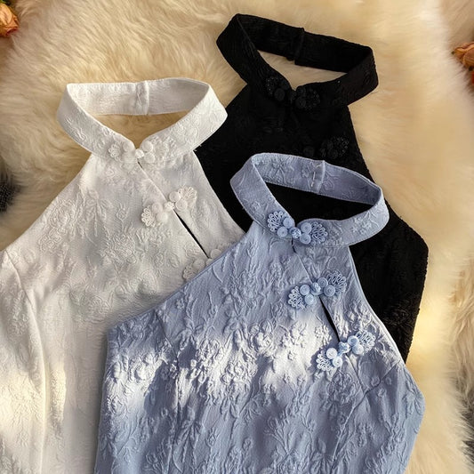 off-shoulder halterneck bell-sleeved shirt for women, fashionabl irregular short top S4131