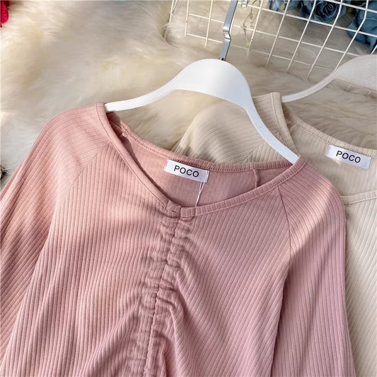 sexy short crop top design V-neck style long-sleeved T-shirt S4129