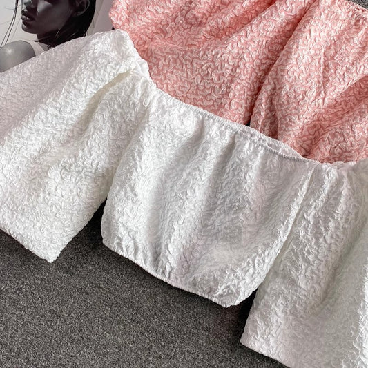 puff sleeve off-shoulder shirt for women short-sleeved chic short top S4157