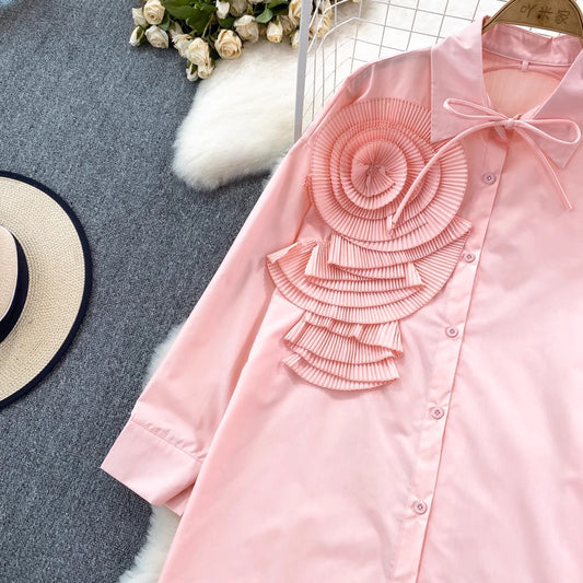 new fashion flower V-neck long-sleeved casual shirt top for women S4166