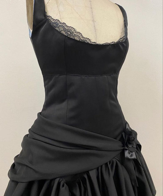 Black short skirt with suspenders, white neckline, one shoulder, slim waist and flower bud skirt, homecoming dress R4025