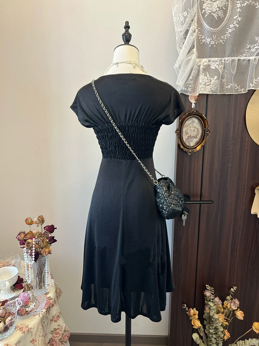 Black short skirt V-neck bow slim skirt homecoming dress R2509