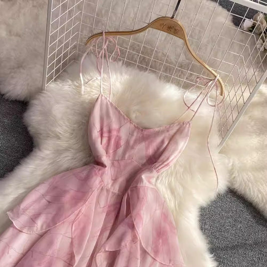 Floral suspender skirt 2025 new pure romantic slim rose dress R0019