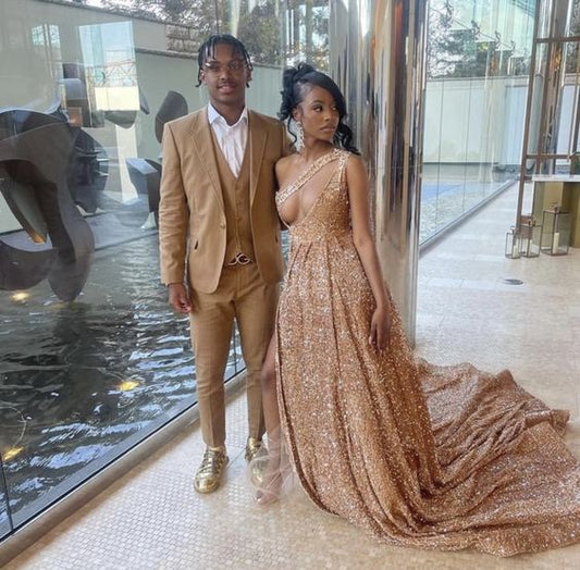 Gold Sequin Long Prom Dresses Evening Gowns S3548